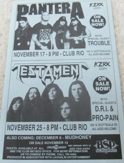 - 25/11/1992; Concert at Club Rio, Phoenix, AZ, USA. with D.R.I. & Pro-Pain.