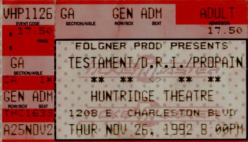 - 26/11/1992; Concert at Huntridge Theatre, Las Vegas, NV, USA. with D.R.I. & Pro-Pain.