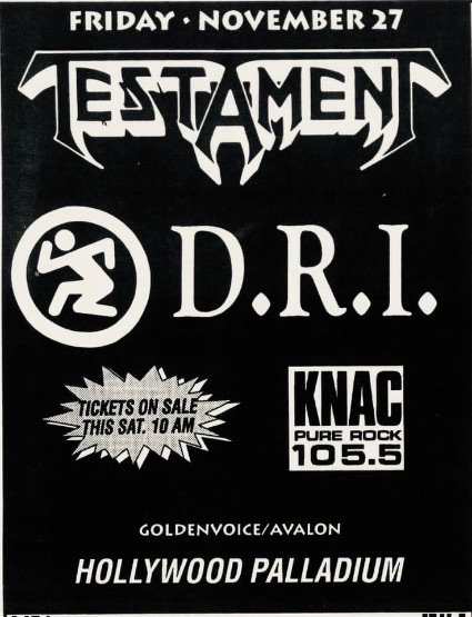 - 18/07/1987; Concert at Fender's Ballroom, Long Beach, CA, USA. opening for D.R.I., with Excel & Holy Terror.