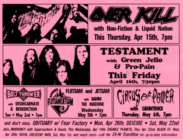 - 30/08/1987; Concert at Liberty Lunch, Austin, TX, USA. opening for Overkill.