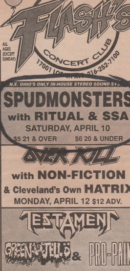 - 14/11/1992; Concert at Flash's Nightclub, Cleveland, OH, USA. with D.R.I. & Pro-Pain.