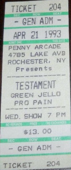 - 21/04/1993; Concert at The Penny Arcade, Rochester, NY, USA. with Green Jello & Pro-Pain.
