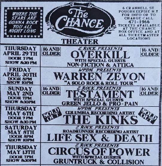 - 02/05/1993; Concert at The Chance, Poughkeepsie, NY, USA. with Green Jello & Pro-Pain.