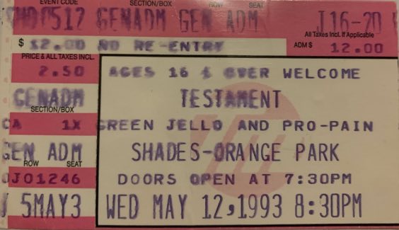 - 12/05/1993; Concert at Orange Park, Shades, FL, USA. with Green Jello & Pro-Pain.
