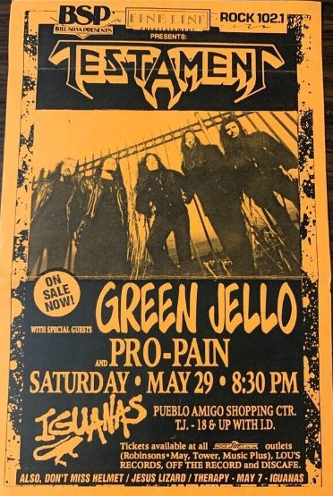 - 29/05/1993; Concert at Iguanas, Tijuana, Mexico. with Green Jello & Pro-Pain.