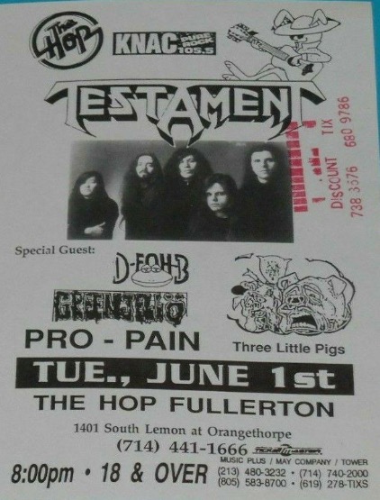 - 01/06/1993; Concert at The Hop, Fullerton, CA, USA. with Green Jello, Pro-Pain & D-Bomb.