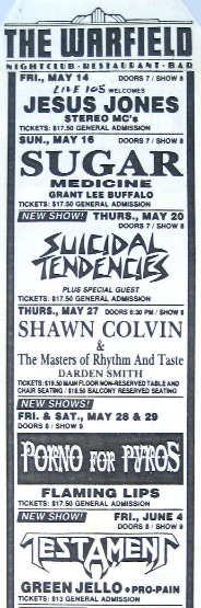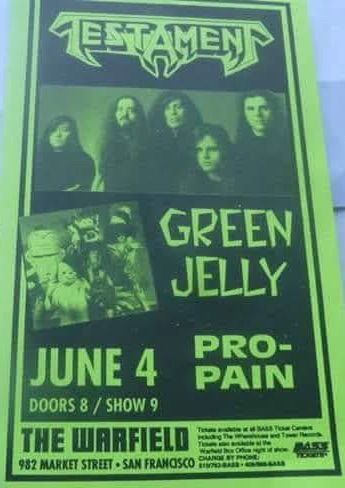 - 04/06/1993; Concert at The Warfield, San Francisco, CA, USA. with Green Jello & Pro-Pain.