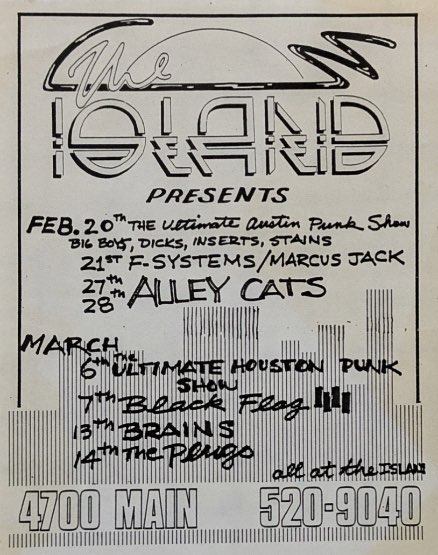 - 23/11/1979; Concert at The Hong Kong Cafe, Los Angeles, CA, USA. opening for Fear, with The Last & Urinals.