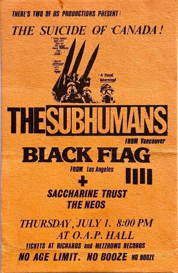 - 09/02/1980; Concert at Smilin' Buddha, Vancouver, BC, Canada. opening for Rabid, with Blackheads.