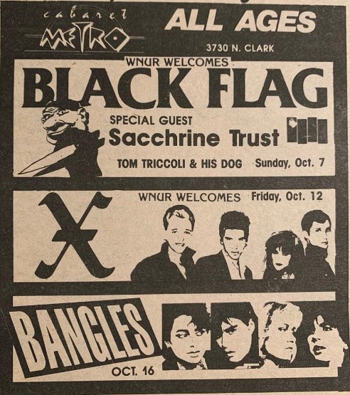 - 20/06/1986; Concert at The Cabaret Metro, Chicago, IL, USA. with Painted Willie & Gone.