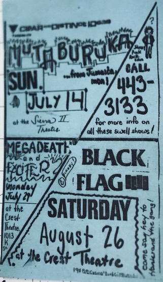 - 03/03/1980; Concert at The Santa Monica Civic Center, Santa Monica, CA, USA. with Social Dismay, Red Cross, Adolescents & Minutemen. (unsure of date).