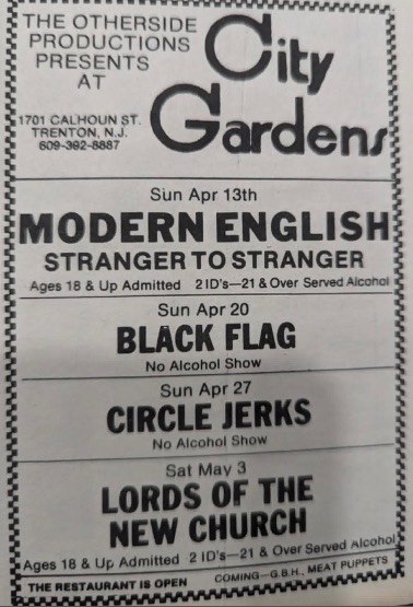 - 20/04/1986; Concert at City Gardens, Trenton, NJ, USA. with Painted Willie & Gone.