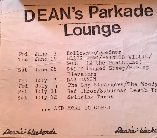 - 15/02/1980; Concert at Bahama's Underground, Seattle, WA, USA. with Exquisite Corpse & Chinas Comidas.