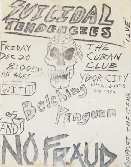 - ??/??/1980; Suicidal form in Venice Beach, CA late '80; Mike (v), Mike B. (g), Mike D. (b) and Carlos (d).