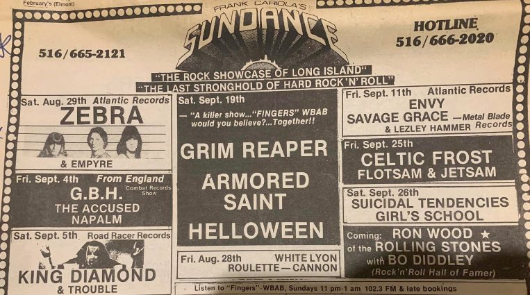 - 16/12/1983; Concert at Ruthie's Inn, Berkeley, CA, USA. with Deadly Reign, The Faction & Fang.