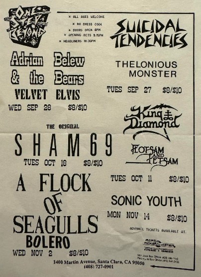 - 15/07/1983; Concert at On Broadway, San Francisco, CA, USA. opening for Youth Brigade & asst.