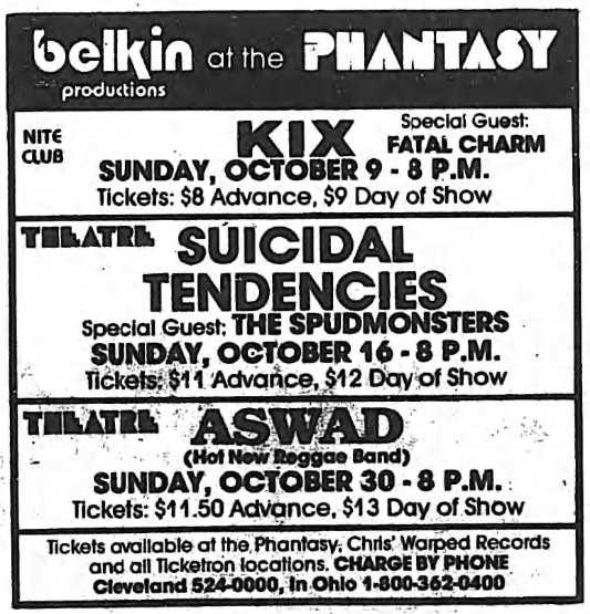- 05/07/1983; 'Suicidal Tendencies' album released. (also listed as 23/06 on some flyers).