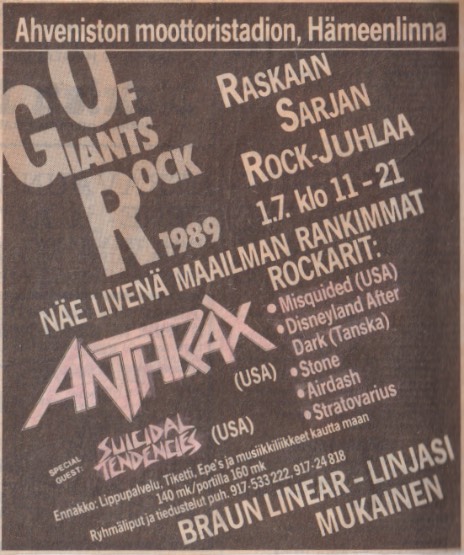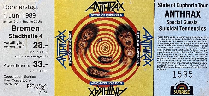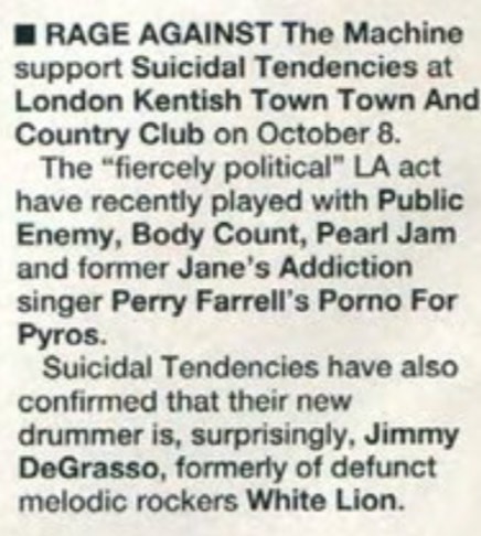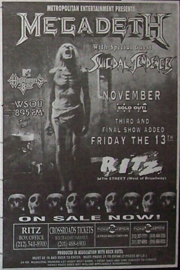 - 30/05/1994; Concert at Darien Lake Performing Arts Center, Buffalo, NY, USA. opening for Metallica & Danzig. (May 30th - Aug. 21st; 'Suicidal For Life' U.S. tour).