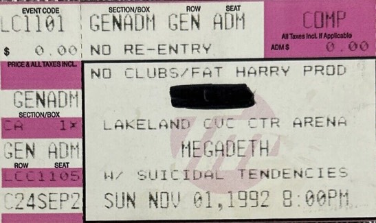 - 20/08/1994; Concert at Tampa State Fairgrounds, Tampa, FL, USA. opening for Metallica.