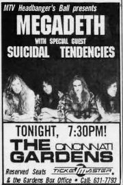 - 19/06/1994; Concert at Riverbend Music Centre, Cincinatti, OH, USA. opening for Metallica.