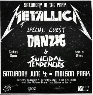 - 04/06/1994; Concert at Molson Park, Toronto, ON, Canada. opening for Metallica & Danzig.