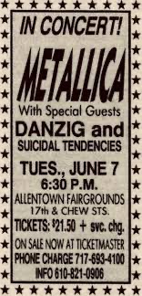 - 07/06/1994; Concert at Allentown Fairgrounds Grandstand, Allentown, PA, USA. opening for Metallica & Danzig.