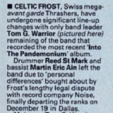 - ??/03/1994; Celtic Frost split up for real at some point around March 1994 due to lack of label interest.