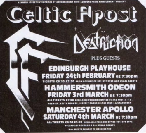 - 24/02/1989; Concert at The Playhouse, Edinburgh, Scotland. with Destruction.