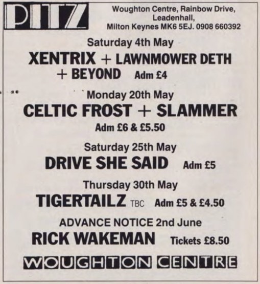 - 20/05/1990; Concert at The Woughton Centre, Milton Keynes, England. with Slammer & D.A.M.