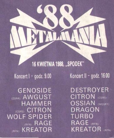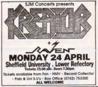 - 03/05/1985; Concert at ??, Velbert, Germany. 'Metal Torture Festival'. 1st show as Kreator.