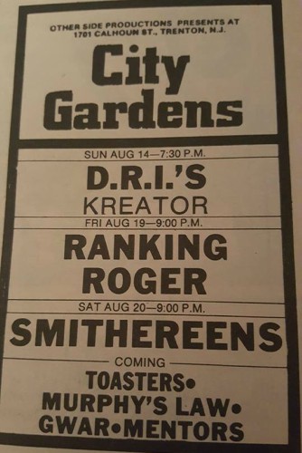 - 24/04/1987; Concert at City Gardens, Trenton City, NJ, USA. opening for Voivod.