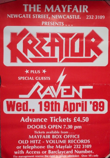- 26/10/1987; Concert at The City Hall, Newcastle, England. opening for Celtic Frost with Virus.