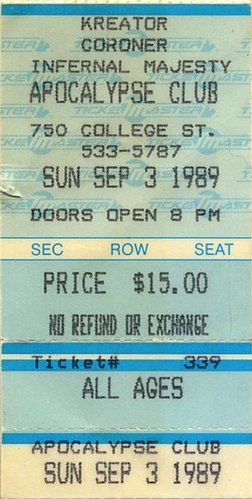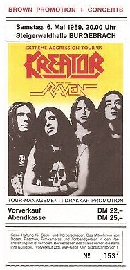 - 10/09/1986; Concert at Rotation, Hannover, Germany. opening for Destruction, with Rage.