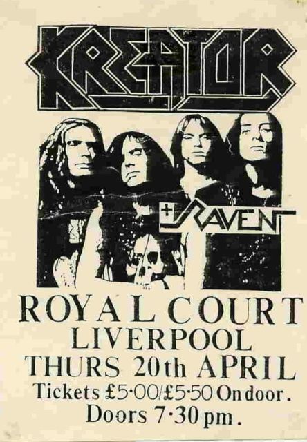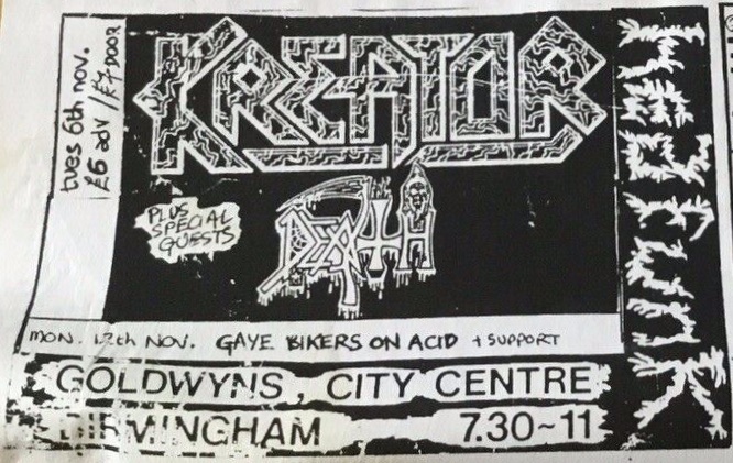- 29/10/1987; Concert at The Apollo Theatre, Manchester, England. opening for Celtic Frost, with Virus.