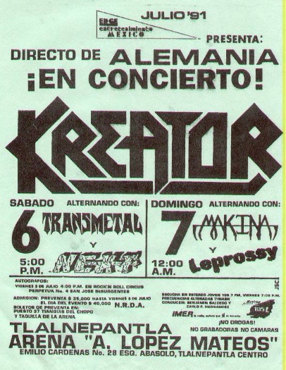 - 06/03/1993; Concert at Auditorio Lomas Verdes, Naucalapan, Mexico. opening for Overkill, with asst.