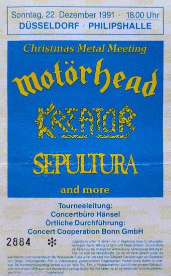 - 19/12/1993; Concert at Phillipshalle, Dusseldorf, Germany. opening for Motorhead, with Sodom & Entombed.