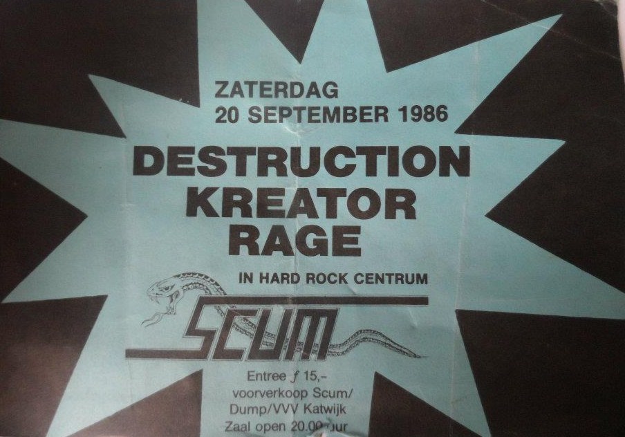 - 20/09/1986; Concert at Club Scum, Katwijk, The Netherlands. opening for Destruction, with Rage.