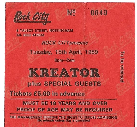 - 27/10/1987; Concert at Nottingham Rock City, Nottingham, England. opening for Celtic Frost with Virus.