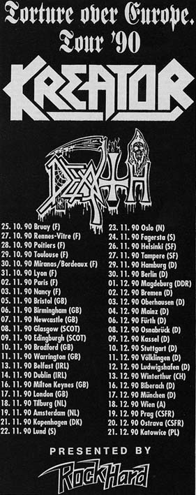 - ??/??/1994; Kreator are dropped by Noise in 1994 and only plays a few dates, Line up changes also slow things down;