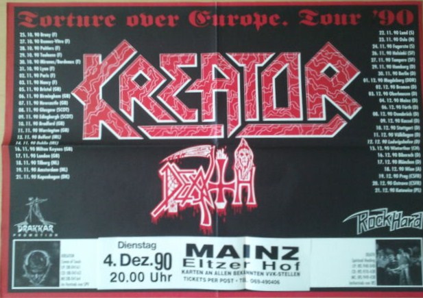 - 14/11/1987; Concert at Eltzer Hof, Mainz, Germany. with Voivod & Tankard.