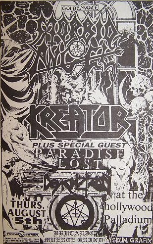 - 05/08/1993; Concert at The Hollywood Palladium, Hollywood, CA, USA. opening for Morbid Angel, with Paradise Lost.