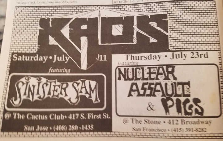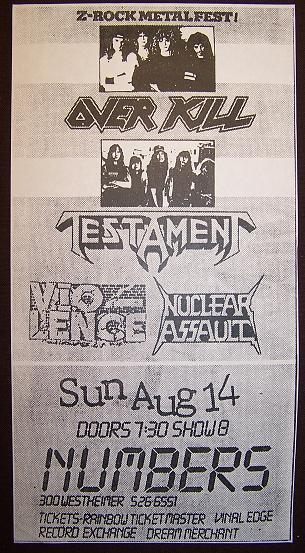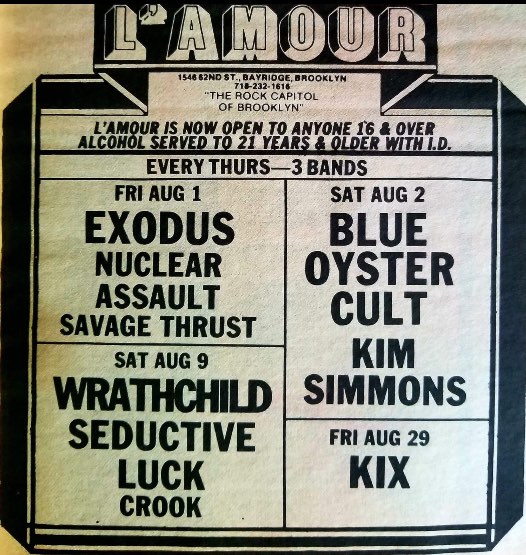 - 01/08/1986; Concert at L'Amour, Brooklyn, NY, USA. opening for Exodus & Savage Thrust.