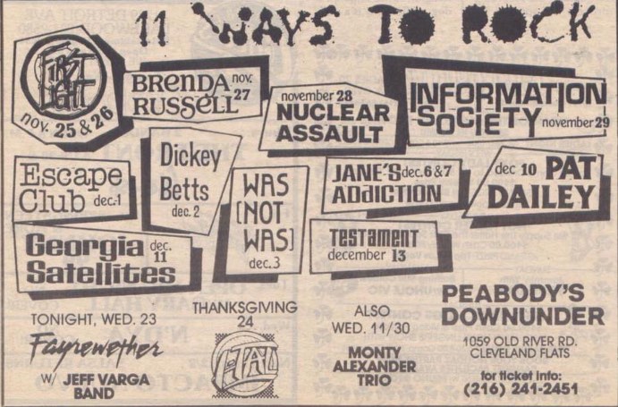 - 26/04/1987; Concert at Penny Arcade, Rochester, NY, USA.