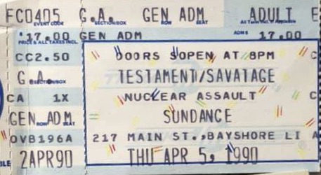- 28/03/1986; Concert at L'Amour, Brooklyn, NY, USA. opening for Anthrax, with Savage Thrust.