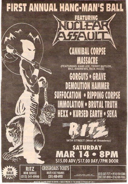 - 07/02/1987; Concert at The Animal Hall, Brooklyn, NY, USA. with Ludichrist, Bloodfeast & asst.