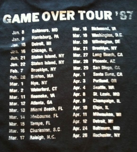 - 08/01/1987; Concert at ??, Baltimore, MD, USA. (Jan. 8th - Apr. 26th; 'Game Over' U.S. tour).