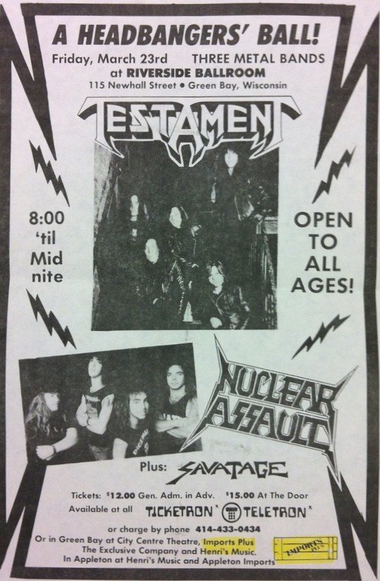 - 15/03/1987; Concert at The Ritz Theatre, Tampa, FL, USA. with Agent Steel & At War.
