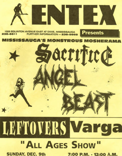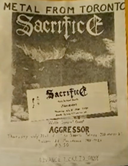 - ??/??/1983; Sacrifice form in Toronto, Ontario, Canada mid '83; Rob (g), Joe (g), Scott (b) & Andrew (d)