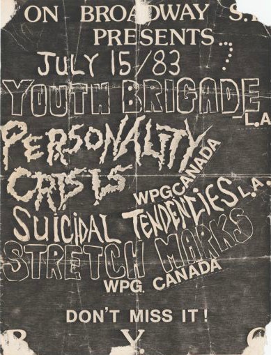 - 15/07/1983; Concert at On Broadway, San Francisco, CA, USA. opening for Youth Brigade & asst.