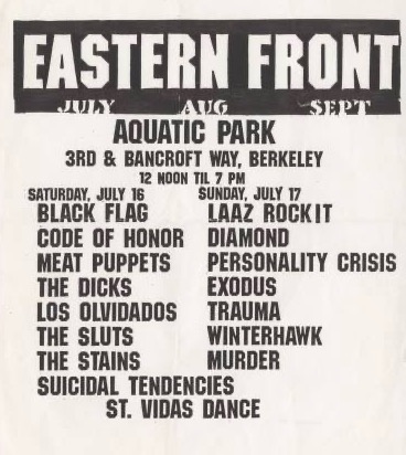 - 16/07/1983; Concert at The Aquatic Park, Berkeley, CA, USA. opening for Black Flag, Meat Puppets, Saint Vitus & asst.